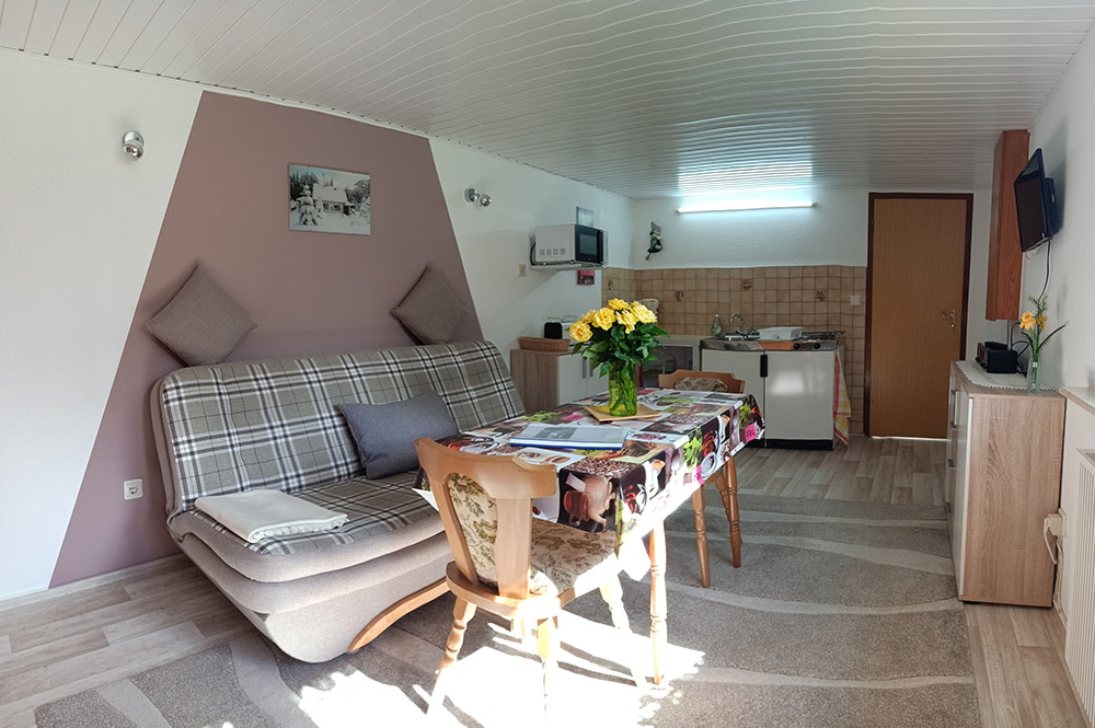 1 Wohnraum, 1 Schlafraum, offene Küche, Bad